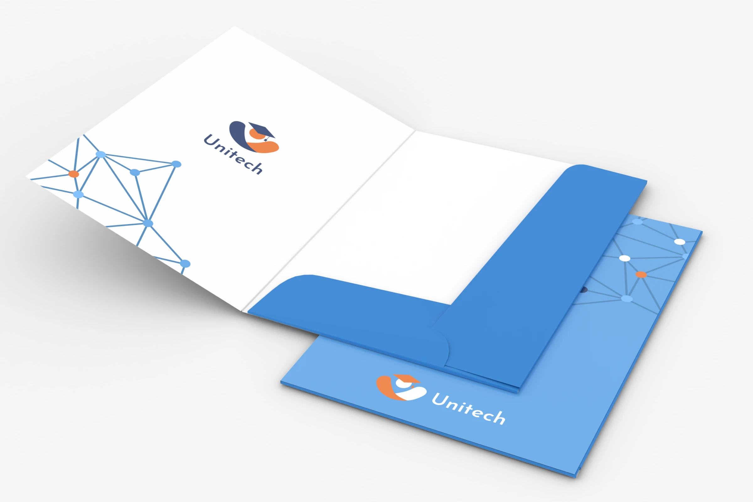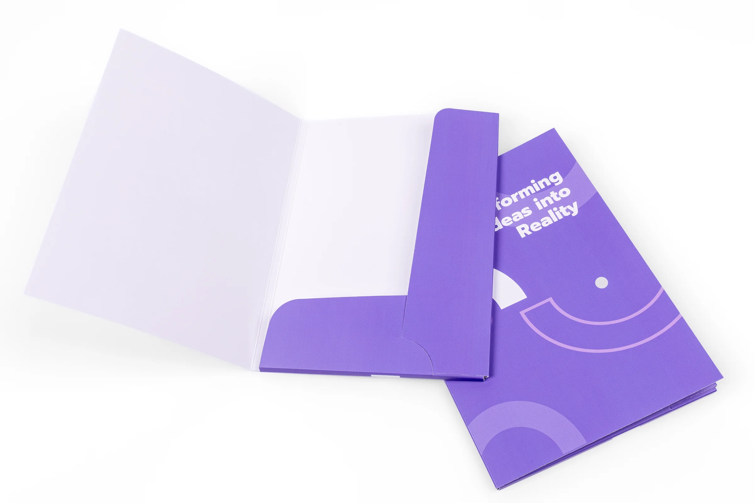 Teczka z nadrukiem w formacie A5 wykonujemy z klasycznym wariancie z dwoma skrzydełkami lub w wersji z trzema skrzydełkami w wersji jedno lub dwubigowej. Można je wykonać w wersji bez żadnego uszlachetniania lub też pokryć je folią błysk lub mat. Teczki możemy zadrukować jednostronnie (strony zewnętrzne) lub dwustronnie (strony zewnętrzne i wewnętrzne).